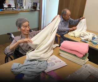 みんなで仲良くタオル畳み