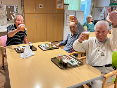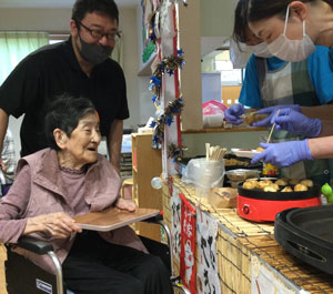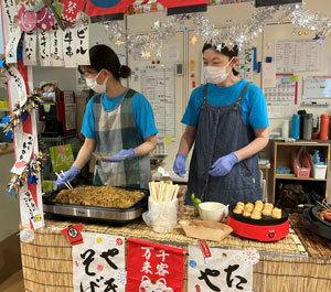 2025年8月25日。特別養護老人ホーム大曽根、おおそねケアセンター合同で夏祭りを開催しました。 定番の焼きそば、たこ焼きをはじめ、今年はフロートが登場!昨年人気だった職員手作りきゅうりの一本漬は餅米で漬けたバージョンが追加。